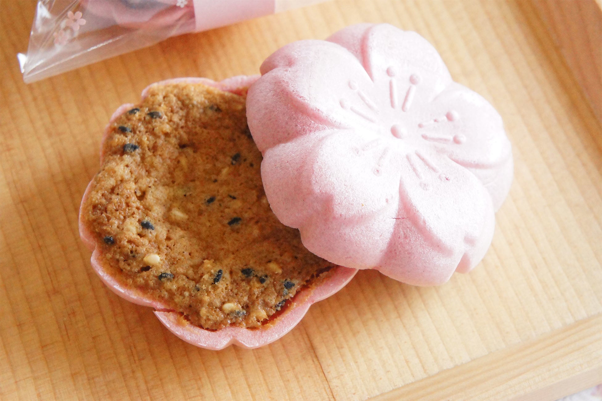 季節限定の桜の形をした最中に、白胡麻と黒胡麻・米粉の生地でさっくり焼き上げたサブレー。 日本茶にも、紅茶や珈琲にも合うお菓子です。