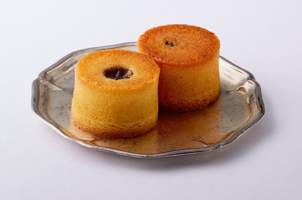 バターの風味とコクをより強く感じられるよう、ヘーゼルナッツのような色になるまでバターを熱した「ブール・ノワゼット(焦がしバター)」をサブレにたっぷり入れました。サブレに見られるブール・ノワゼットの黒い粒から濃厚な旨味を感じられます。