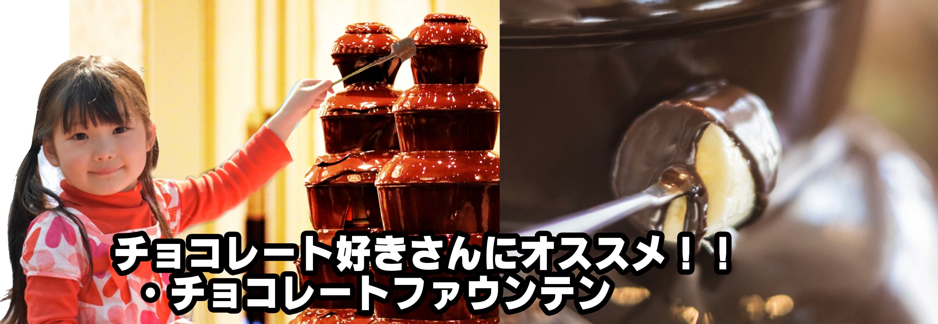 普段は出来ないスイーツの楽しみ方はいかがですか?チョコレートファウンテンでチョコフォンデュ。