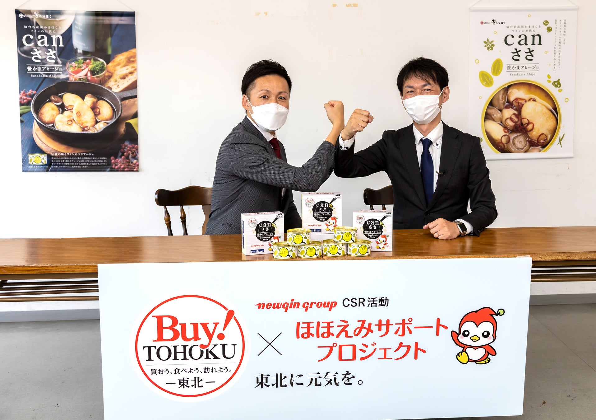 今回の企画のために、Buy!TOHOKUプロジェクトとニューギングループが共同制作したオリジナルパッケージ入りにて合計6,000セットを製造頂くことになりました。