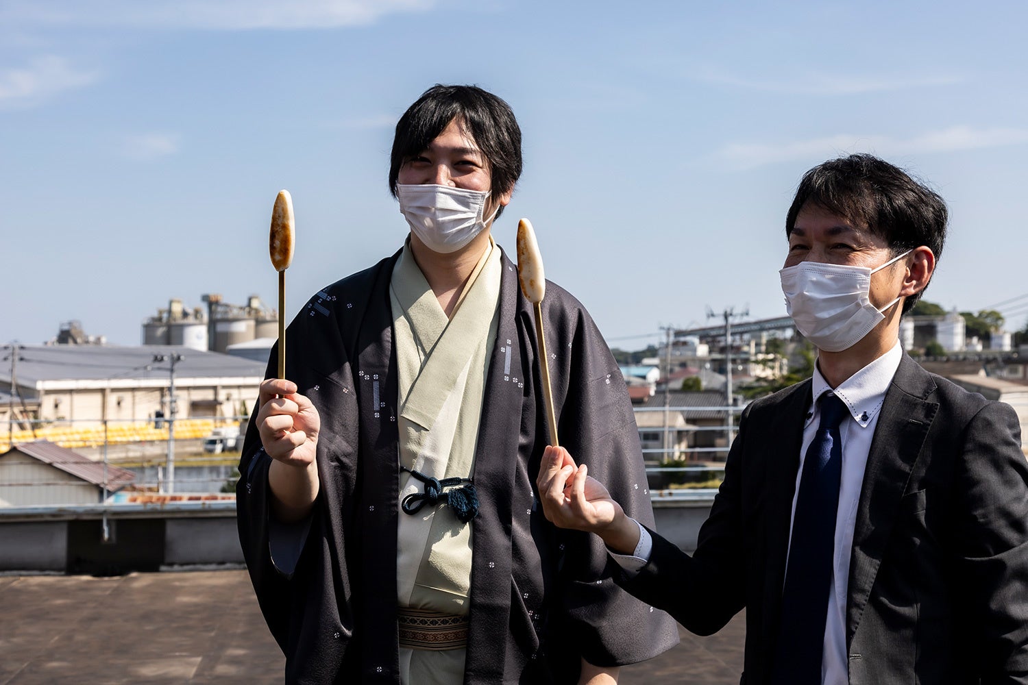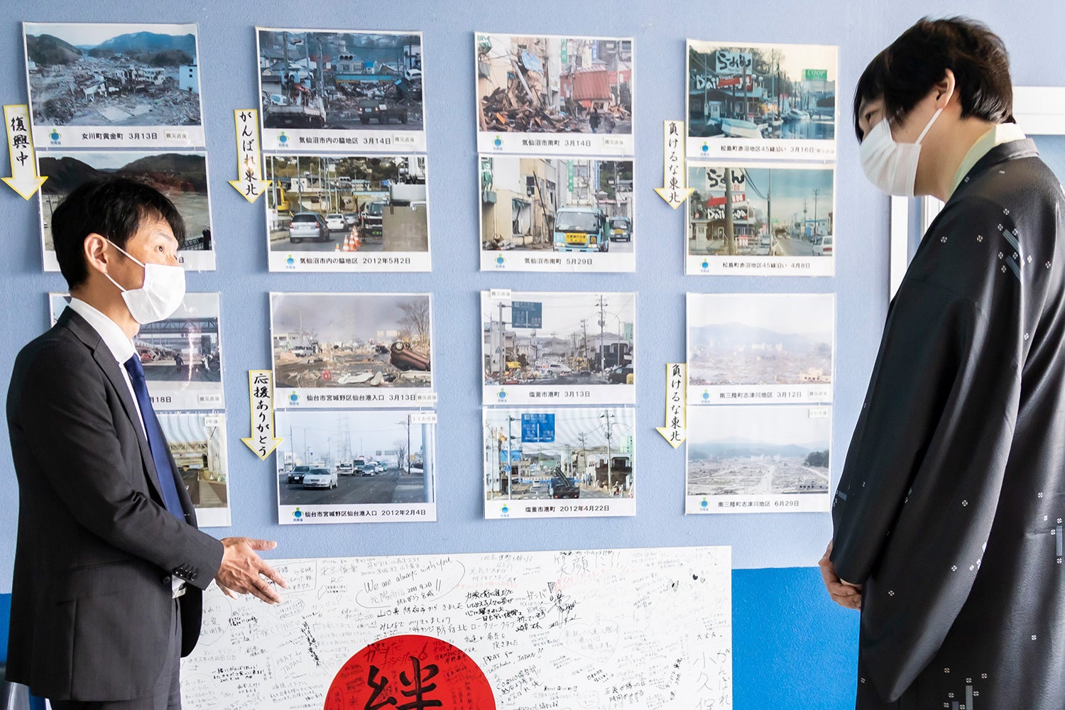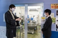 今回の取材では、連れ慶応援隊長を務める落語家の林家キリん氏と共に、笹かまぼこ製造ラインや施設を見学し、インタビューを通じて震災当時の詳しい状況やこうした新商品の誕生秘話について詳しくお伺いしました。