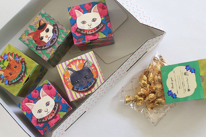 - 6種類のチョコレートを、かわいい「NECOキューブ」でお届け