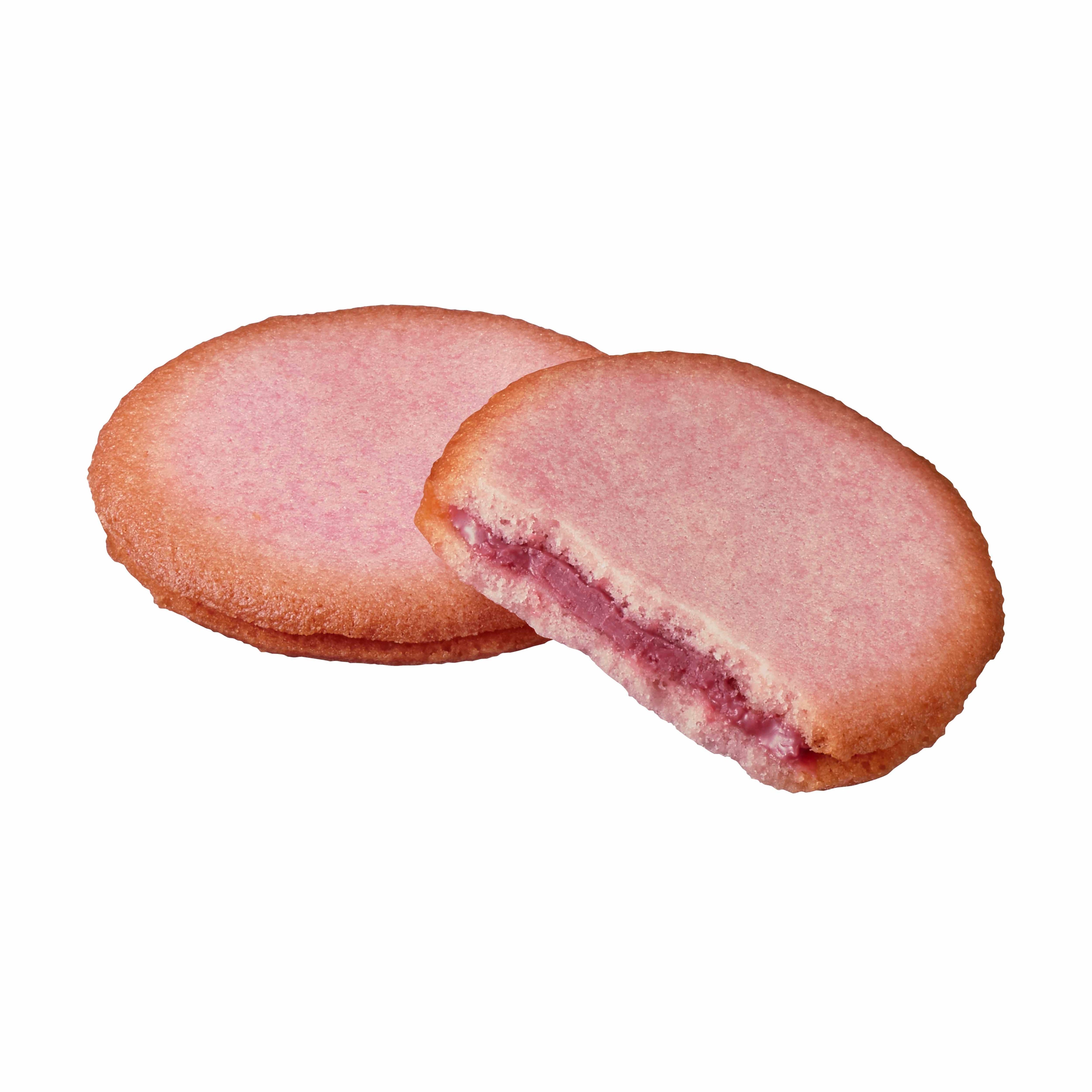 フルーティで甘酸っぱいルビーチョコレートを、ふんわりラズベリーが香るラングドシャ生地でサンドしたクッキー。
