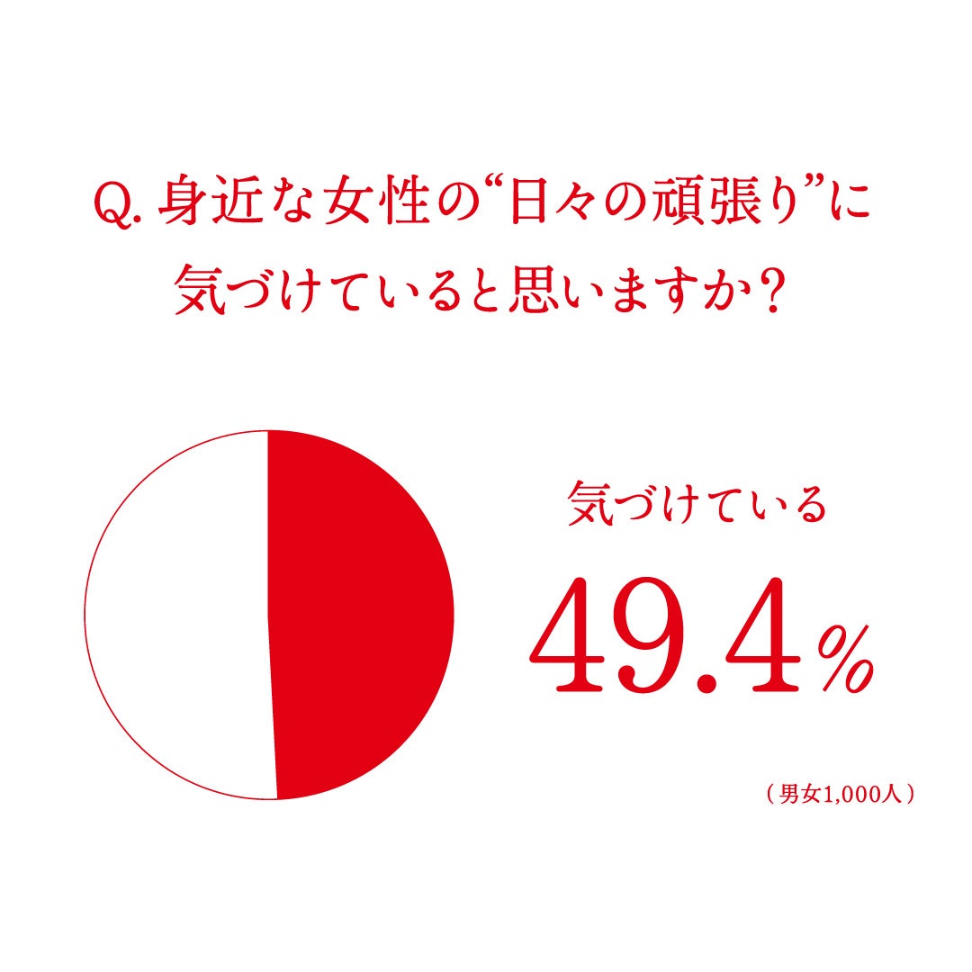 ■身近な女性の“日々の頑張り”に約半数(49.4%)が「気づいている」と回答する一方、実際に「気づいてくれている」と感じている女性は41.4%、さらに「エールをもらえている」と回答した女性は3人に1人(34.4%)しかいないことが明らかに(※エール=感謝・労い・肯定・応援の言葉など)