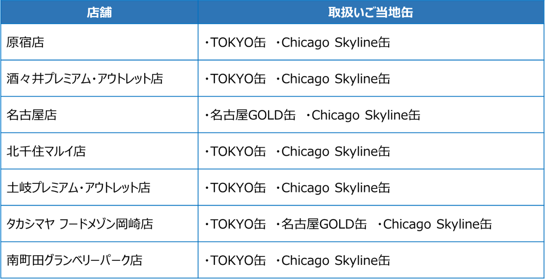 ※J、2ガロン缶は酒々井プレミアム・アウトレット店、土岐プレミアム・アウトレット店の2店舗で限定販売です。