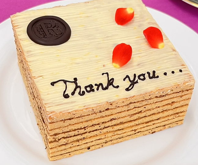 ・母の日の特別仕様として「Thank you」の文字と花びらを添え、リセライーツの「R」をかたどった砂糖不使用・無添加のチョコを添えました。