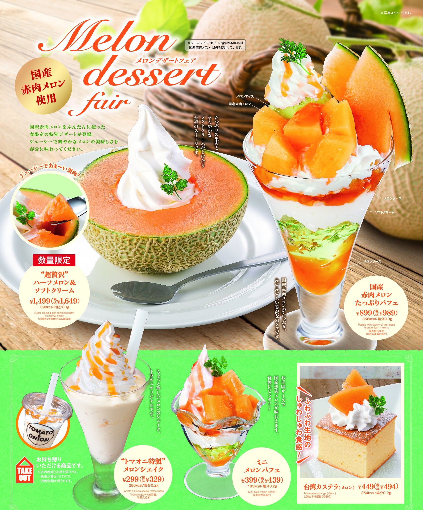 株式会社トマトアンドアソシエイツ(本社:兵庫県西宮市、代表取締役社長:小林 大二)が運営する、アメリカンダイニング「トマト&オニオン」では、2022年4月15日(金)より、メロンデザートフェアを開催します。