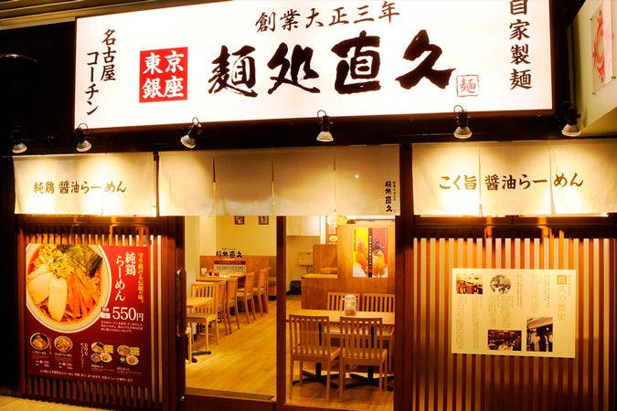 創業後、昭和42年(1967年)、「本場の味らーめん直久」として1号店を東京銀座に出店。当時から行列を絶やさないほど人気を誇った老舗らーめん店です。
