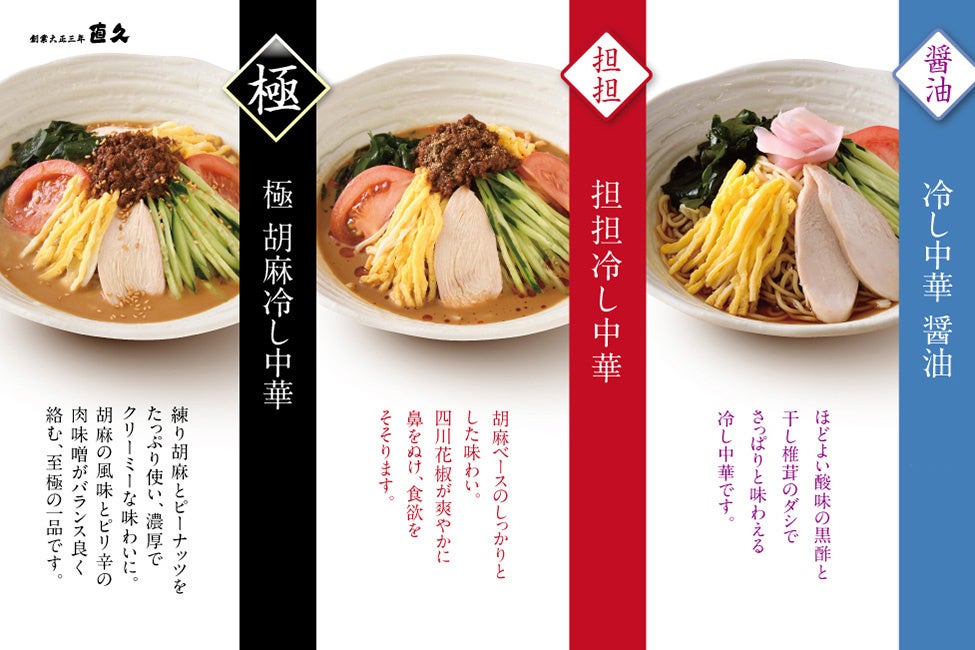 株式会社鉄人化計画グループである、株式会社直久(東京都目黒区、代表取締役社長:根来 拓也)が運営する老舗らーめん店「銀座直久」は、新味を含む3種の季節限定「冷し中華」を、2022年4月15日(金)から発売します。