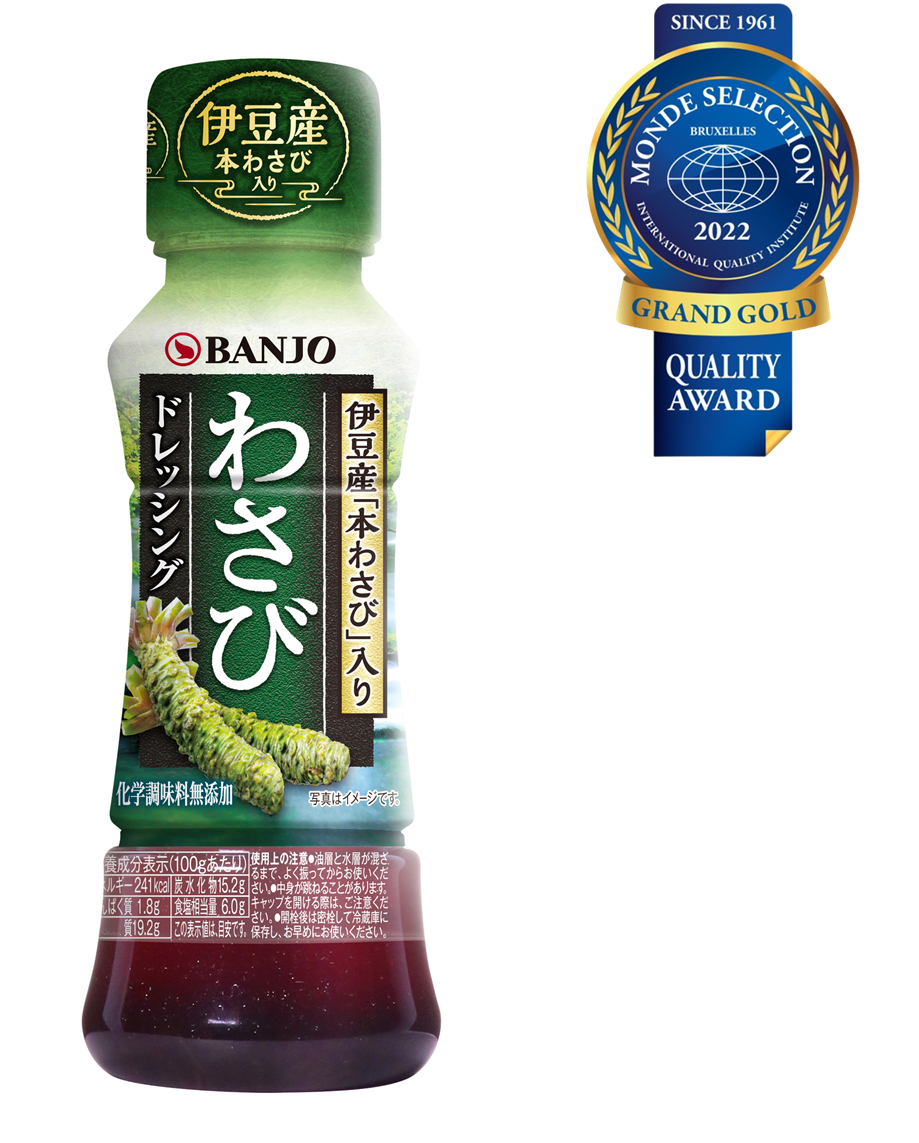 わさび製品を中心に香辛料・調味料を開発・製造する、株式会社万城食品(ばんじょうしょくひん 本社:静岡県三島市、代表取締役社長:米山一郎)は、「わさびドレッシング(170ml)」「うま塩ドレッシング(170ml)」「わさびフレンチソース」の3商品が世界的な食品品評コンクールであるモンドセレクション2022において、金賞を受賞したことをお知らせいたします。また本年は、「わさびドレッシング」が12年連続となる金賞受賞に加えて、3年連続で金賞以上を受賞した商品に贈られる「インターナショナル ハイクオリティトロフィー」も獲得いたしました。