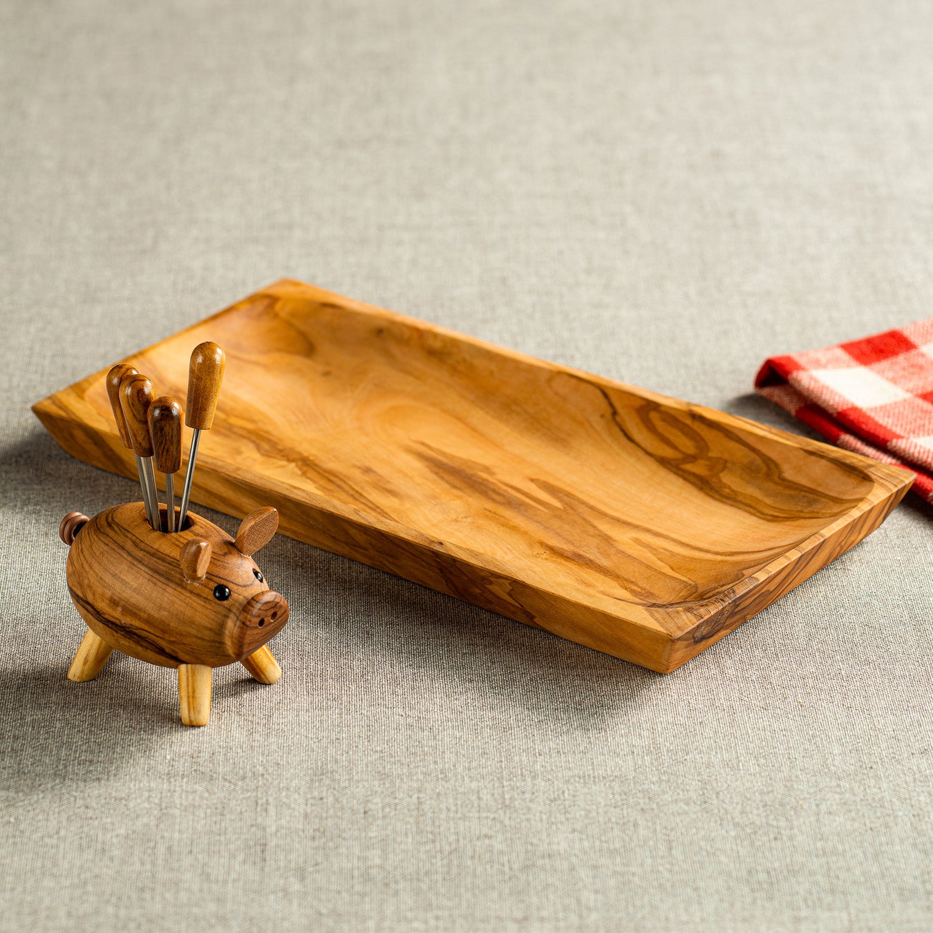 オリーブの自然な木目を活かしたプレートや愛嬌あふれるブタモチーフのピックスタンド。デイリーにもおもてなしにも活躍します。