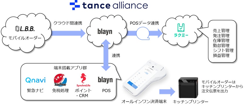 SBペイメントサービスのオールインン決済端末にtanceプラットフォームサービスが搭載されたことで、Qナビを利用して水漏れやエアコンの故障などの店舗トラブル対応が可能になり、業務効率化を実現いたします。その他、POSアプリ「ブレイン」、トークンエコノミー型グルメSNSのSynchroLife(シンクロライフ)の全自動CRMによる常連顧客の育成、J-TaxFreeシステムによる免税手続きの電子化等と連携しております。詳細はtanceのプレスリリースをご確認ください。