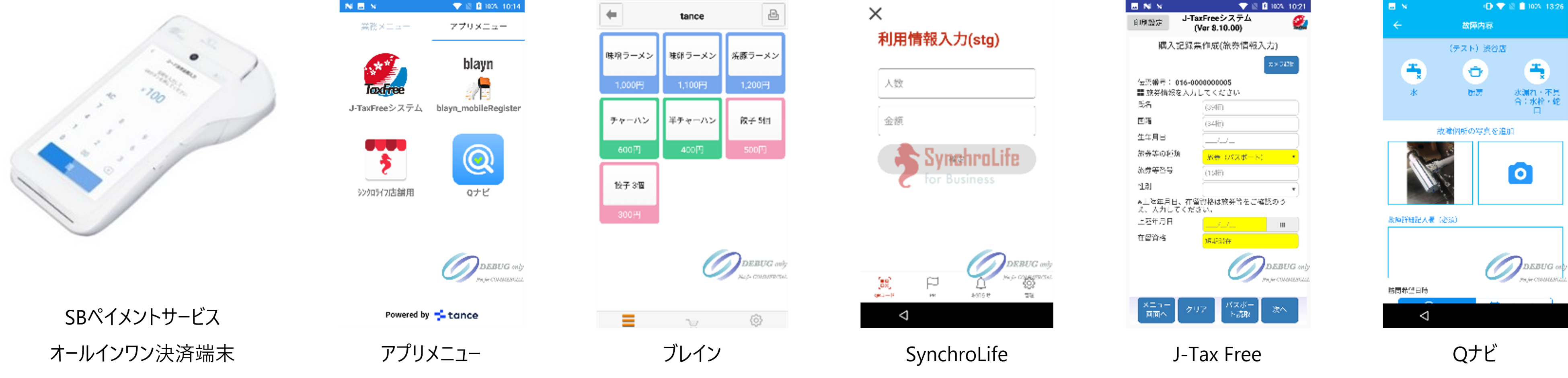 SBペイメントサービスのオールインン決済端末にtanceプラットフォームサービスが搭載されたことで、Qナビを利用して水漏れやエアコンの故障などの店舗トラブル対応が可能になり、業務効率化を実現いたします。その他、POSアプリ「ブレイン」、トークンエコノミー型グルメSNSのSynchroLife(シンクロライフ)の全自動CRMによる常連顧客の育成、J-TaxFreeシステムによる免税手続きの電子化等と連携しております。詳細はtanceのプレスリリースをご確認ください。