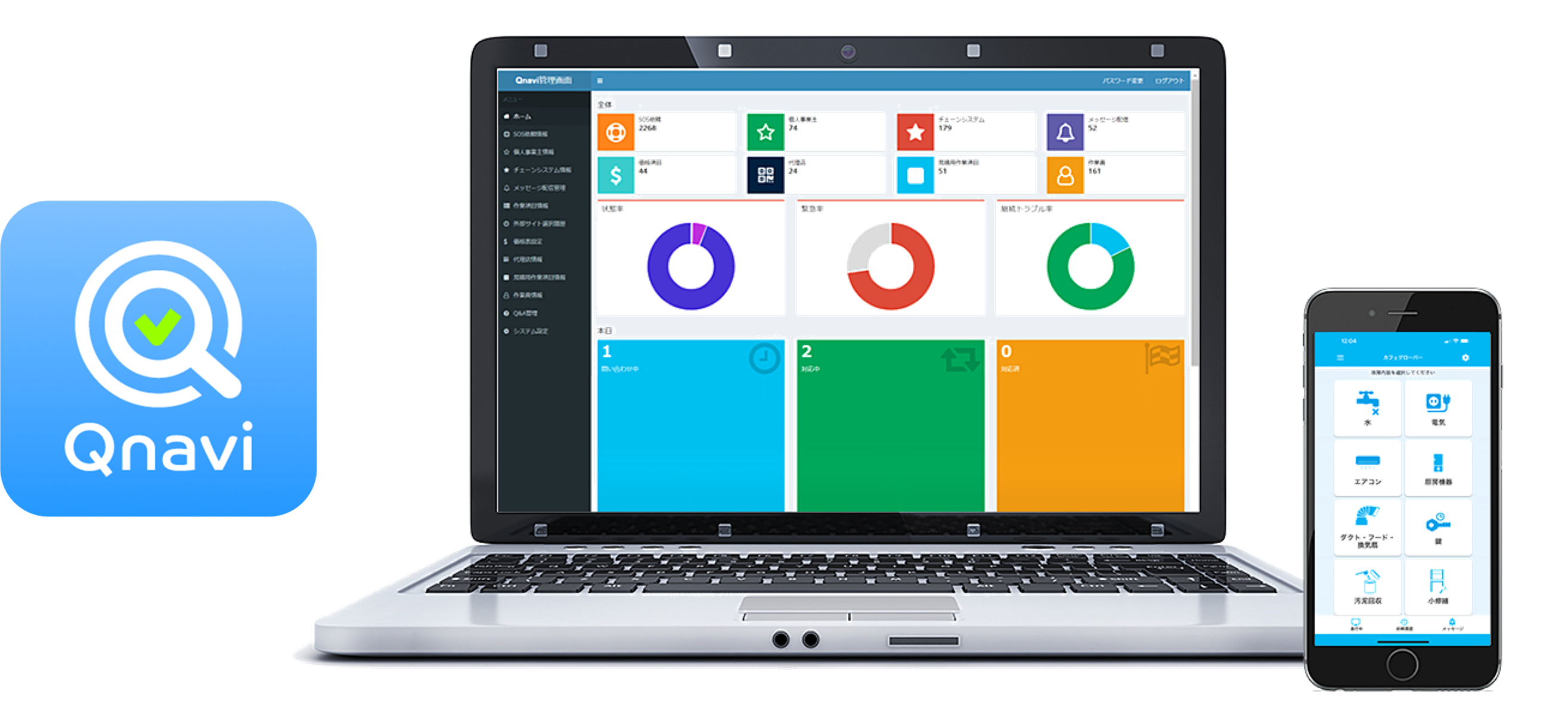 「Qナビ」(https://qnavi.club/)とは、メンテナンス業務のDX化により、店舗トラブル及びメンテナンスの対応時間を大幅削減するサービスです。空調や水回り、漏電等の突発的な店舗トラブルが発生した際には、対応可能な業者と店舗様のマッチングを行い、トラブル発生から対応業者の立候補まで最短30秒(平均90秒)で店舗トラブルを解決することができます。