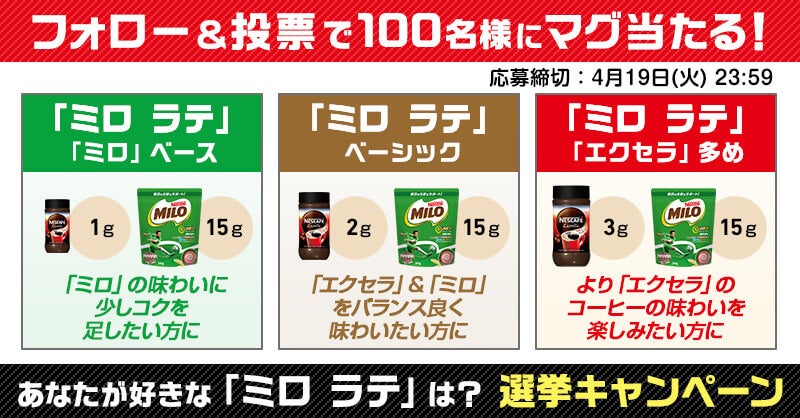 - “あなたが好きな「ミロ ラテ」は?選挙キャンペーン”について
