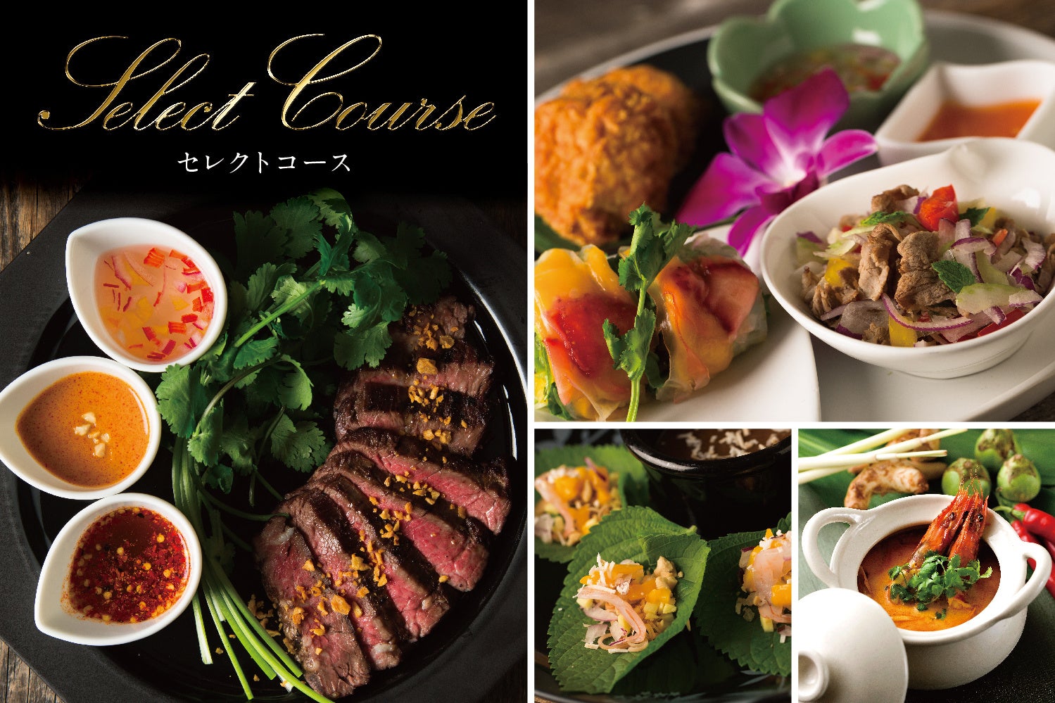 大皿でシェアして楽しむ「CHEF’S COURSE」とお好きな料理をセレクトして楽しむ「SELECT COURSE」の2種類のコースをご用意しております。「Jim Thompson’s Table Thailand YOKOHAMA」のお料理を大満喫いただけるコースです。