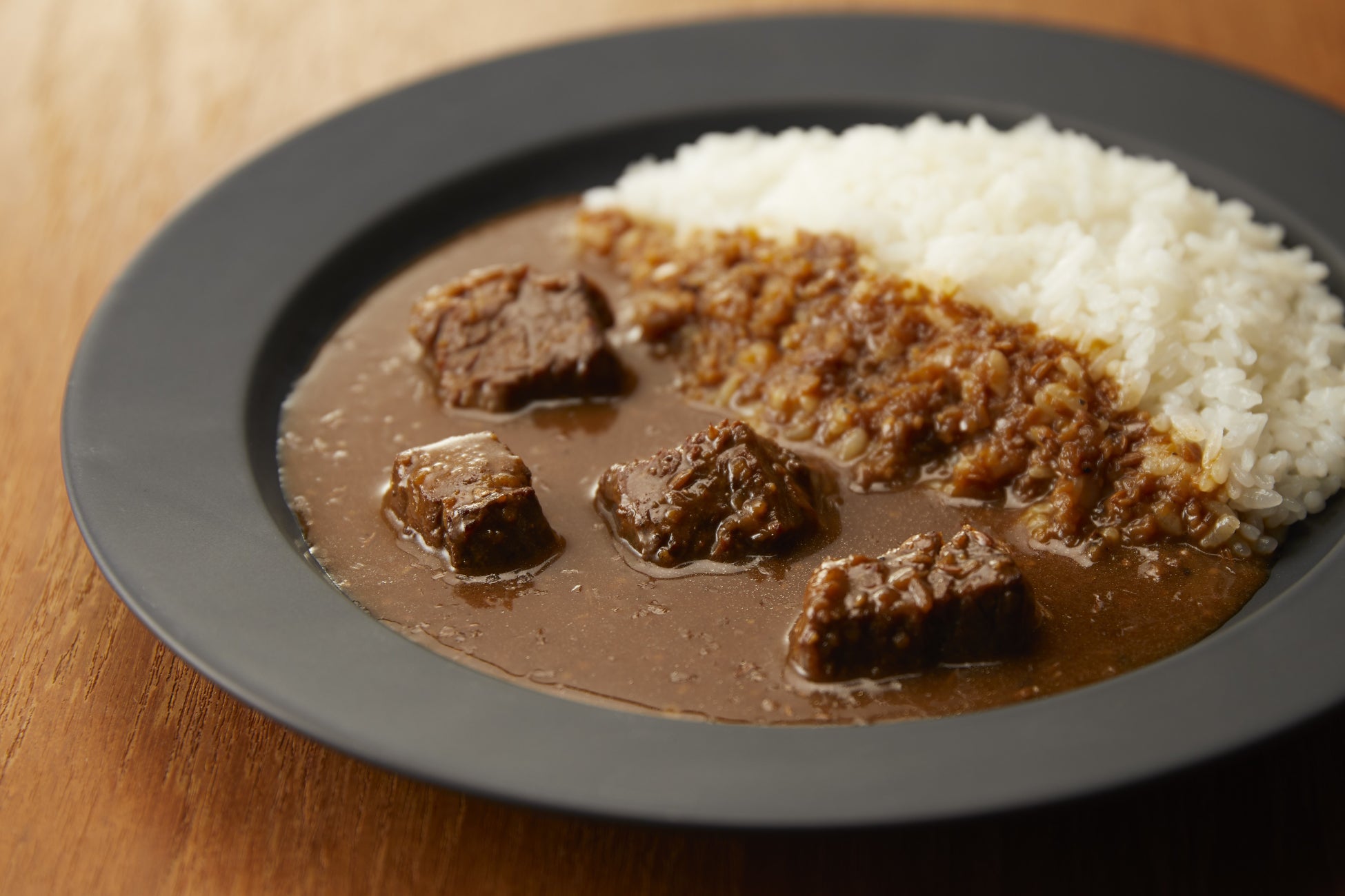 カレーの主役でもある「にんにく」を表現するため、ソテーオニオンにはない香ばしさや旨みの凝縮した乾燥炒めたまねぎと、フライドガーリックを使用することで、香ばしさを引き立たせ、ビーフステーキを思わせる味わいを目指しました。牛肉に合わせて赤ワインビネガーを使用し、最後まで飽きずに食べられるように、味を引き締めています。