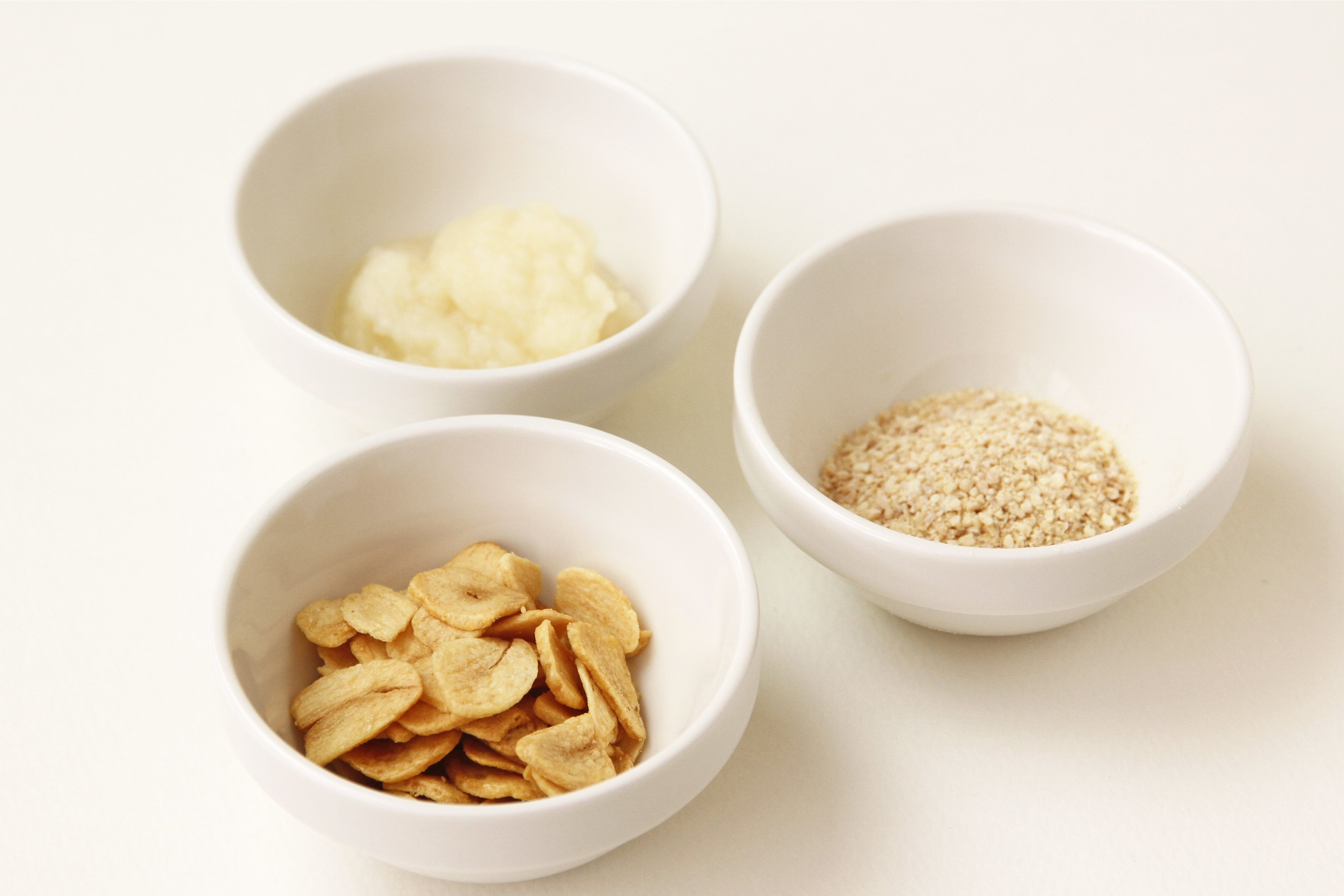 ①乾燥にんにく:にんにくの風味と形が残る様にしています