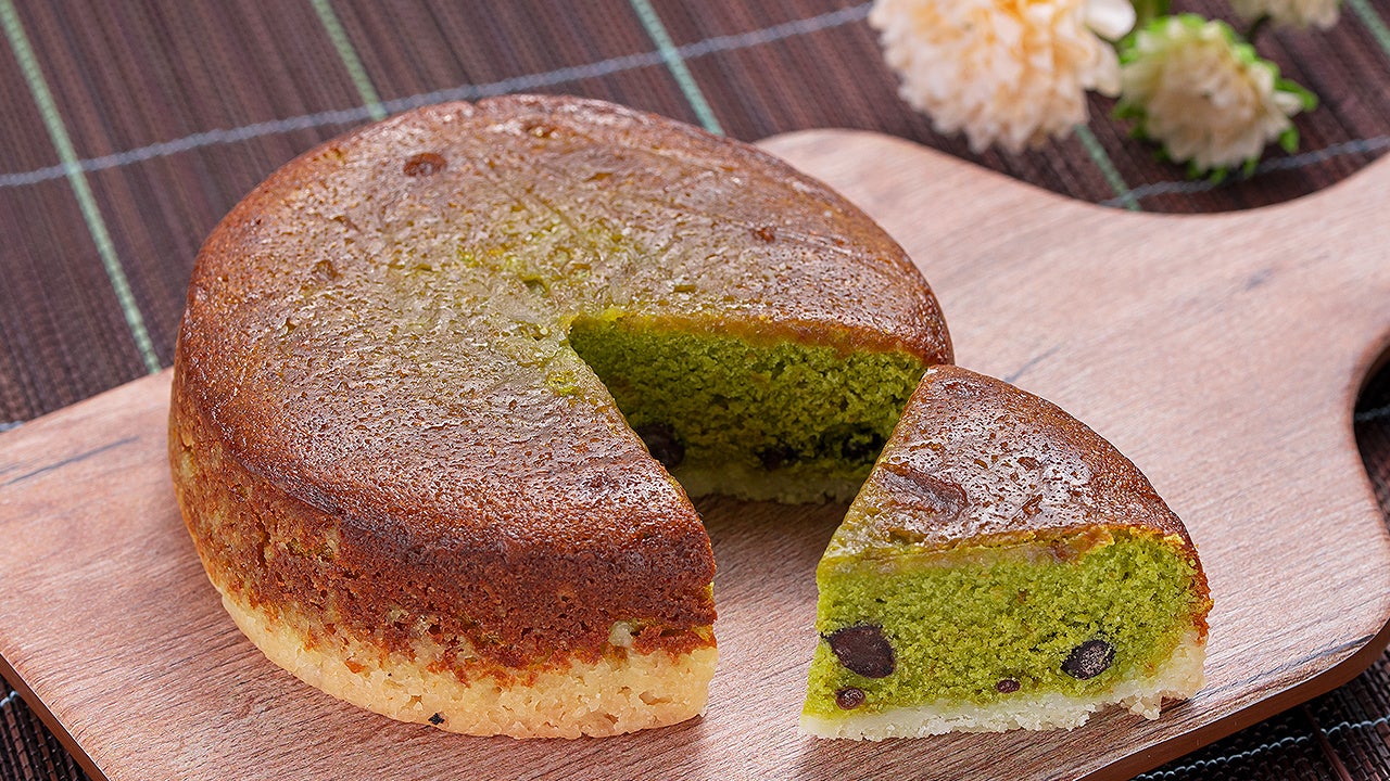 ザクザク食感のタルト生地に、小豆を混ぜ込んだ抹茶風味のケーキ生地をのせて焼き上げたタルトです。