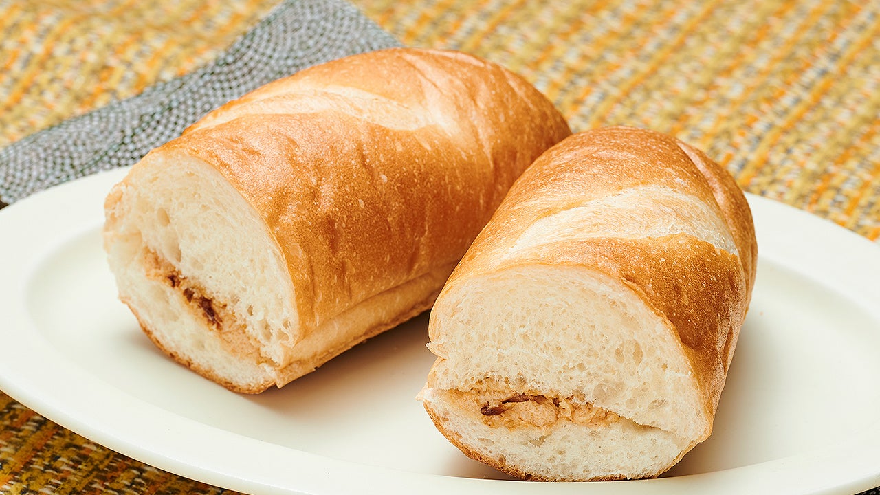 しゃりしゃりとした食感の黒糖入りきな粉クリームを、ソフトな食感のフランスパンでサンドしました。