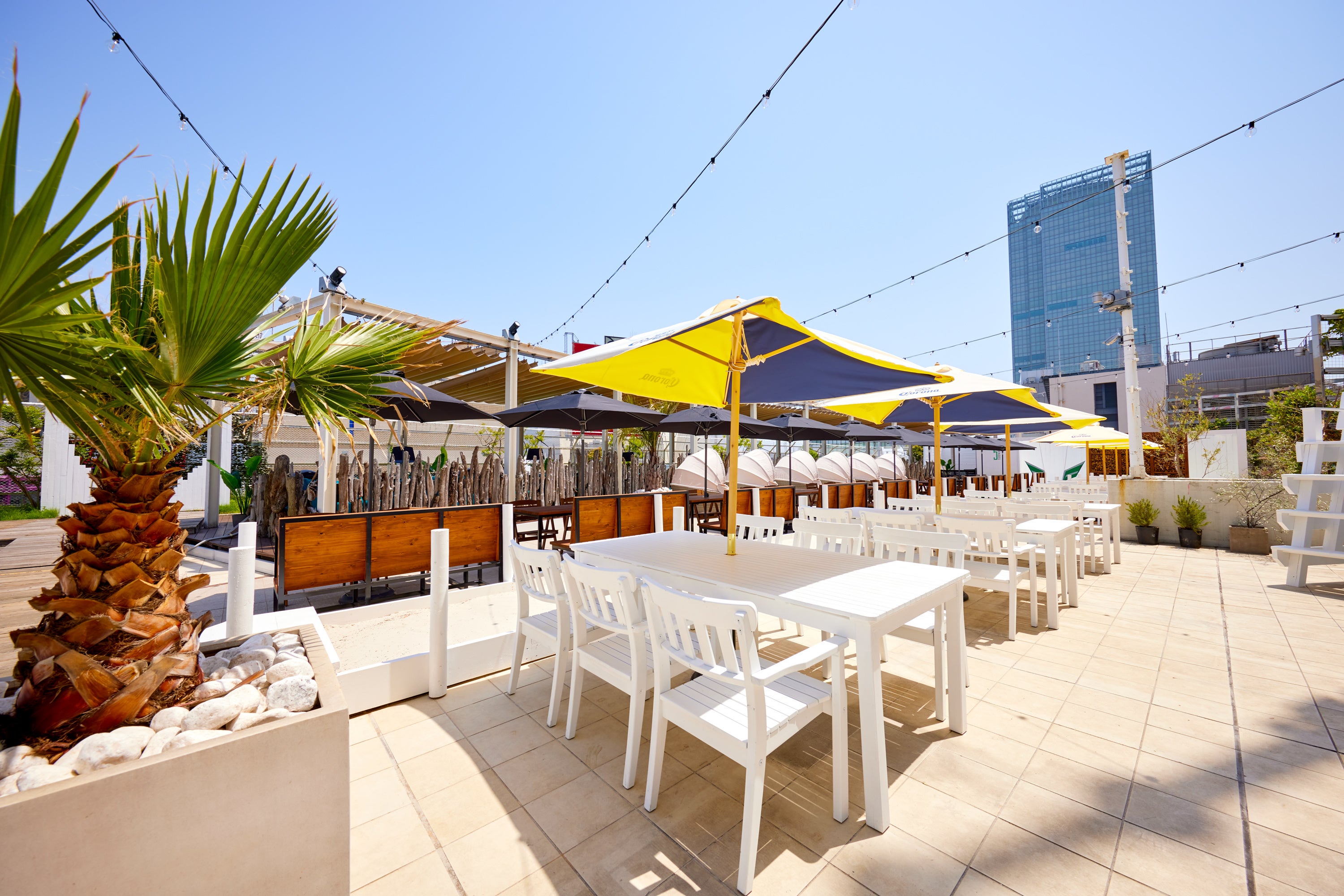 「5 SENSES(優越感・空気感・満足感・期待感・一体感)」を施設コンセプトに手ぶら(3,600円〜)持込み(2,000円〜)も可能な選べるバーベュープランとスーパードライのフリードリンクプランに加えラグジュアリーテラス、グランピングデッキ、ランウェイビーチ、アニバーサリールームに加えて、LA発の新食感と迫力の「ワイルドバーガー/55 BURGERS」も味わえるカフェエリア「yellow LA garden」もオープンします。