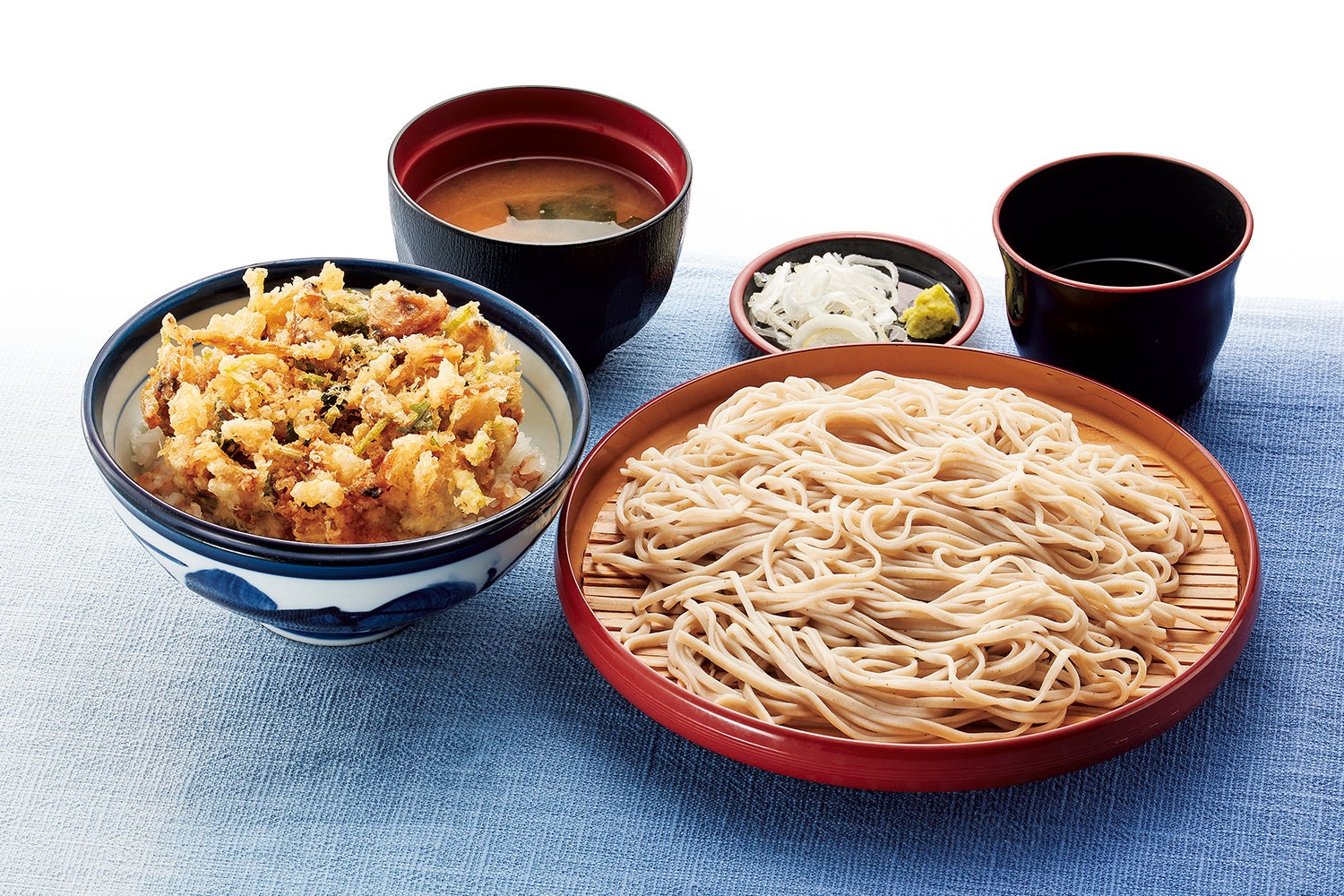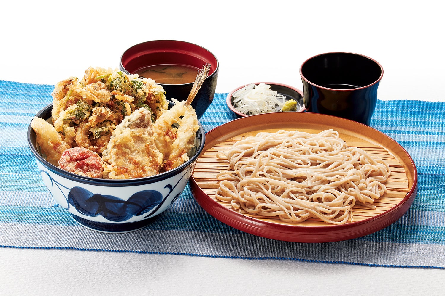 ごはんが小盛りの『初夏小天丼』とそば(またはうどん)が一緒に楽しめるセットです。