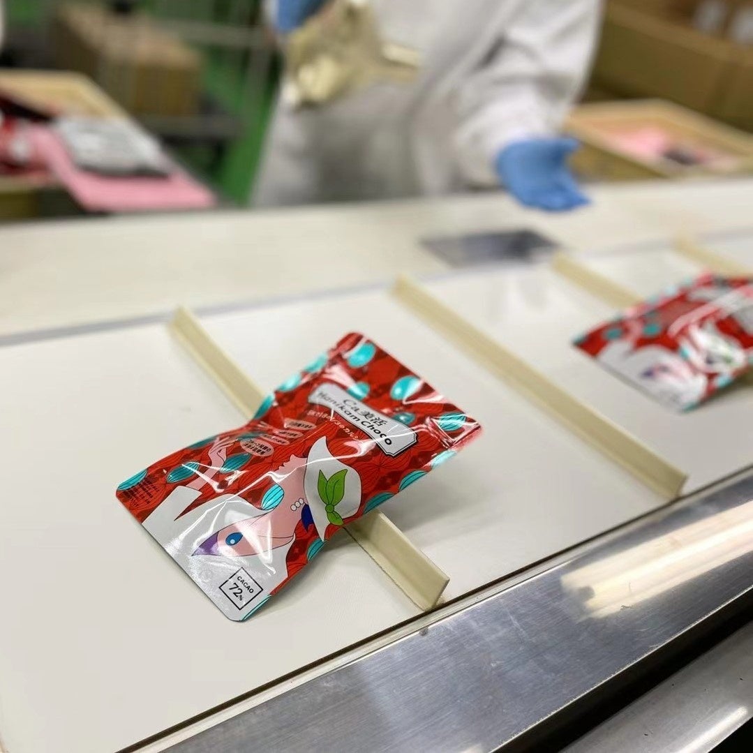 このチョコレートの製造・販売に携わる全員が、頑張る女性を応援したいという想いを持っています。「Ca美活 Hanikam Choco」の製造現場においても、全員がその思いを共有し、心を込めて一つずつ丁寧に袋詰めしています。