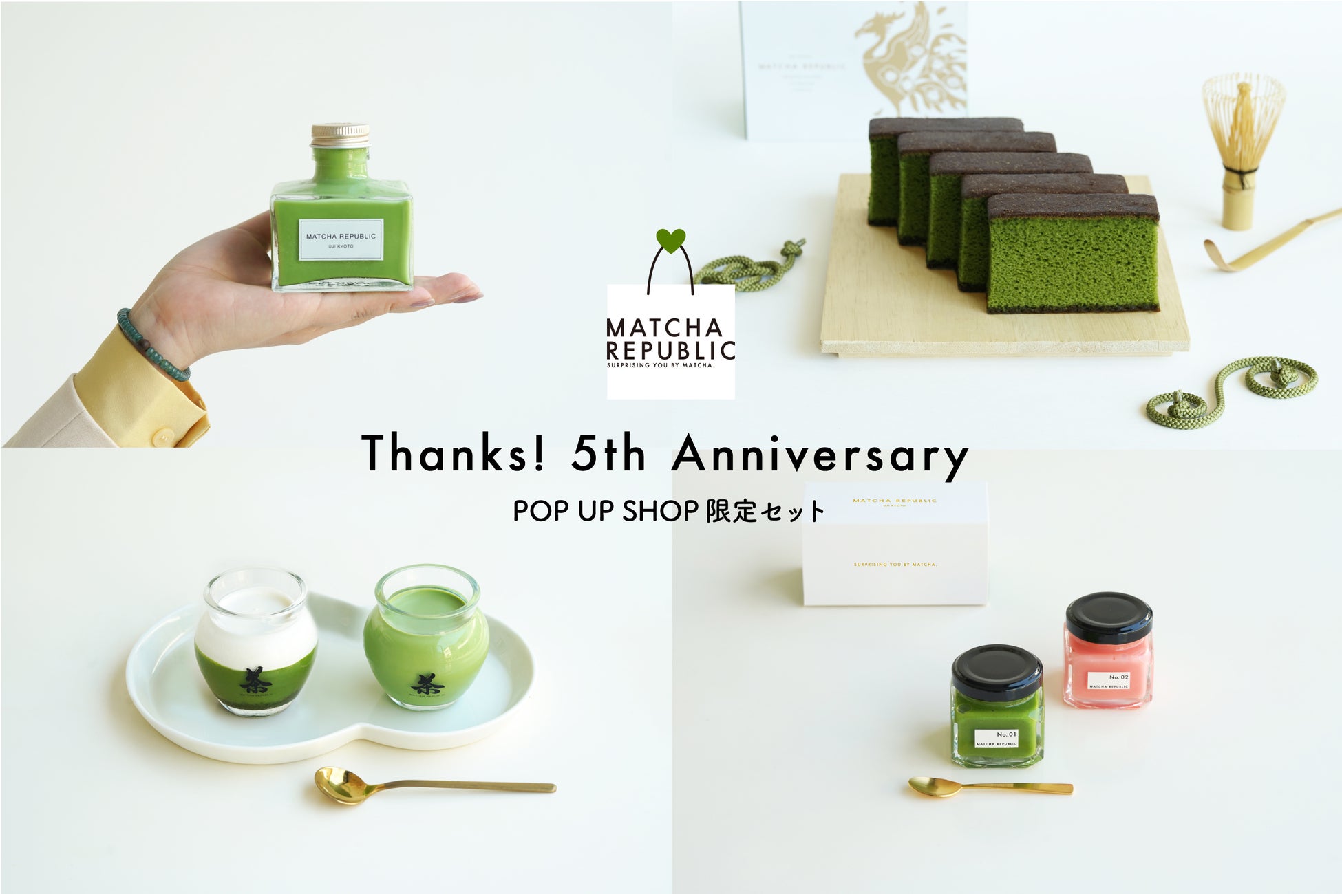 今年5周年(Since 2017.5.3~)を迎える抹茶共和国 Matcha Republicがアニバーサリー記念企画第一弾として、期間限定ショップを渋谷ヒカリエShinQsにオープンいたします。