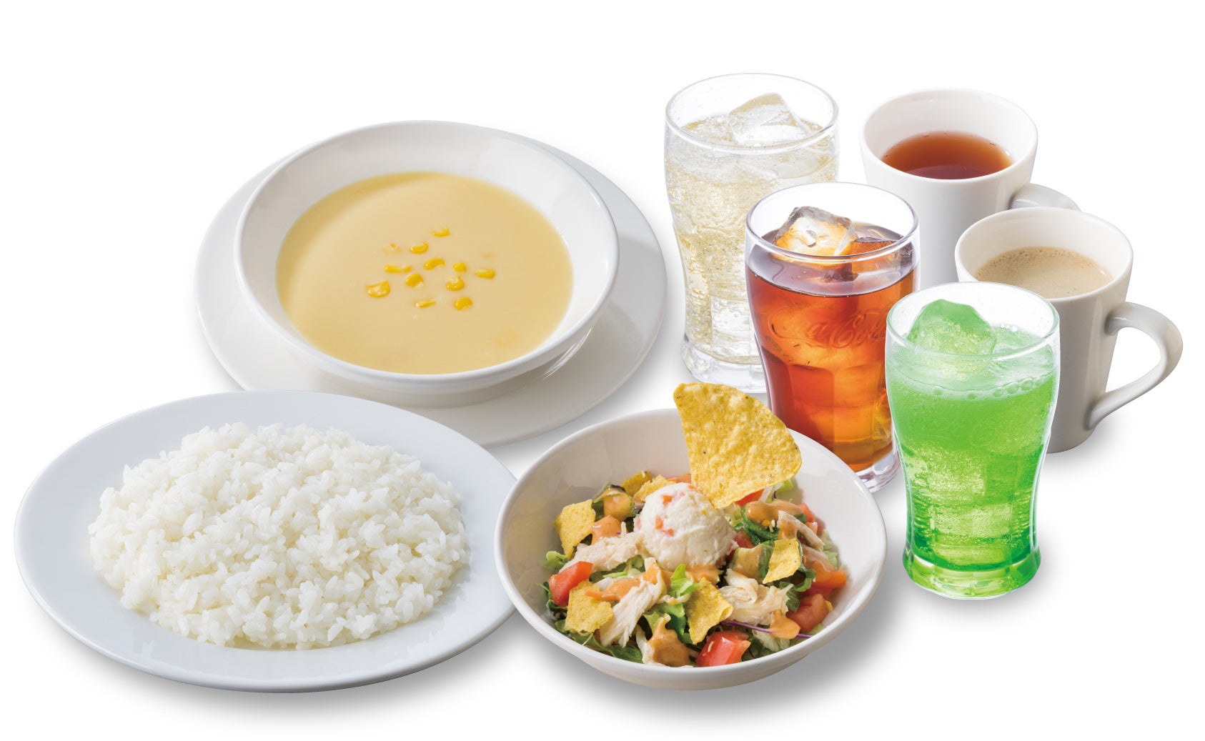 ライス/とうもろこしのポタージュスープor季節のスープ/ハウスサラダ/ドリンクバー