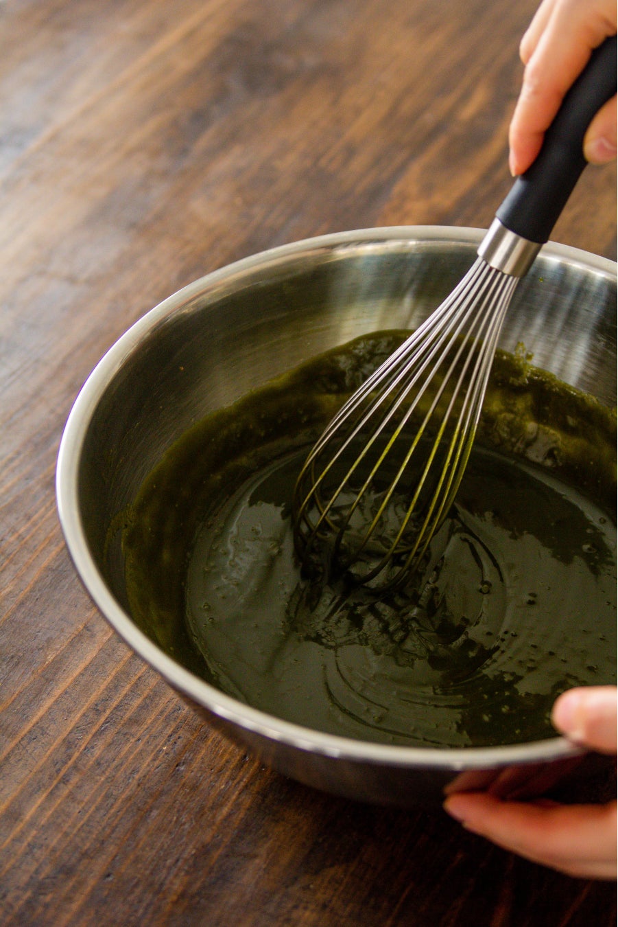 新茶が出回るシーズンに季節を感じる抹茶の新メニューをつくりたいと思い企画しました。抹茶スイーツがごまんとある中で、私たちが目指したのは「日本人なら絶対好きな味、絶対的正義な美味しさ」です。抹茶の色を出すことに固執しすぎることなく、どうあれば絶対的正義の味がするかを徹底的に考え抜き、ホワイトチョコレートだけでない複数産地のチョコレートを配合してベースの味を作りました。