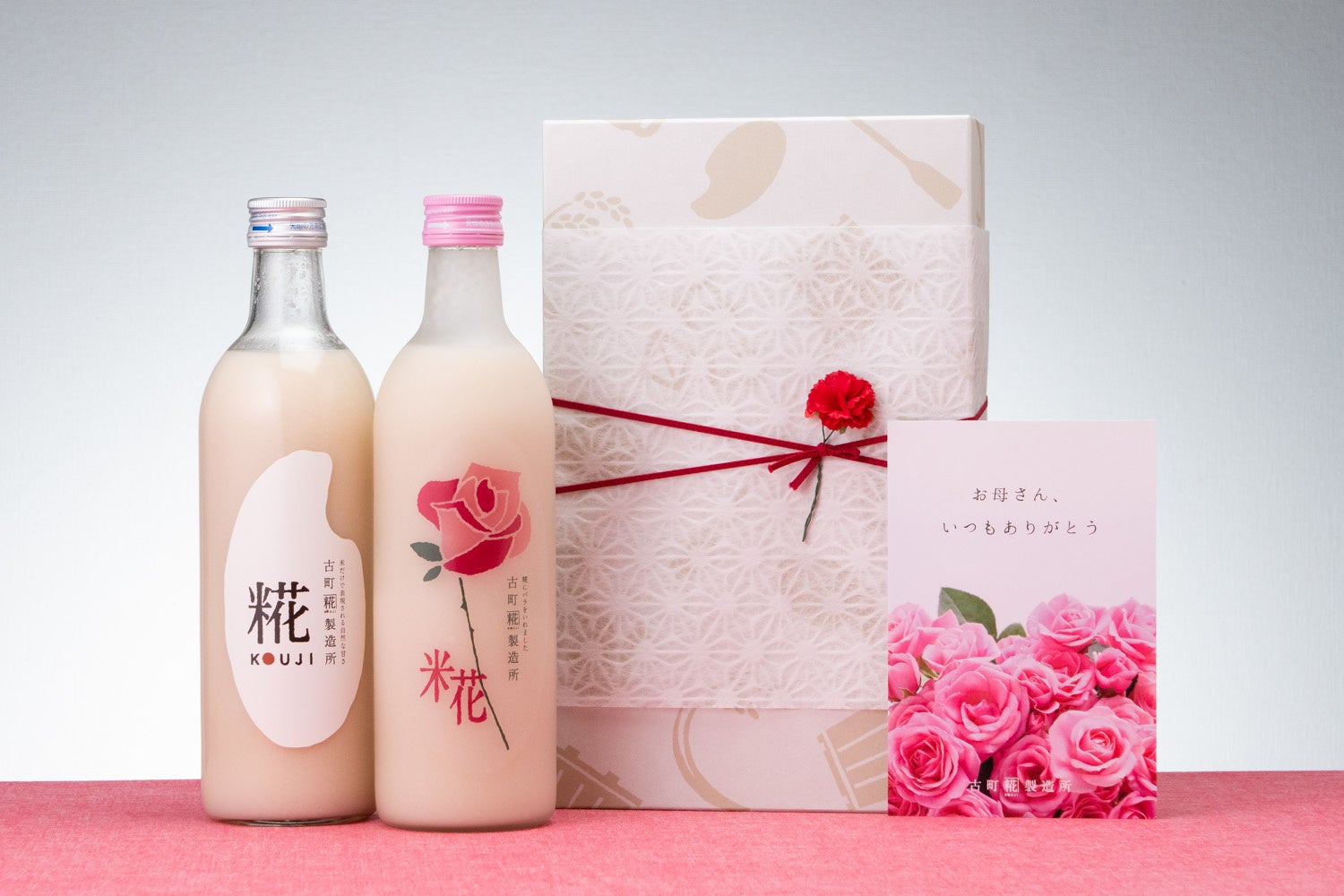 ロート製薬株式会社と共同開発した化粧品「糀肌」付きのギフトセットは、身体の内側と外側から糀の力でお母さんの綺麗をサポートします。