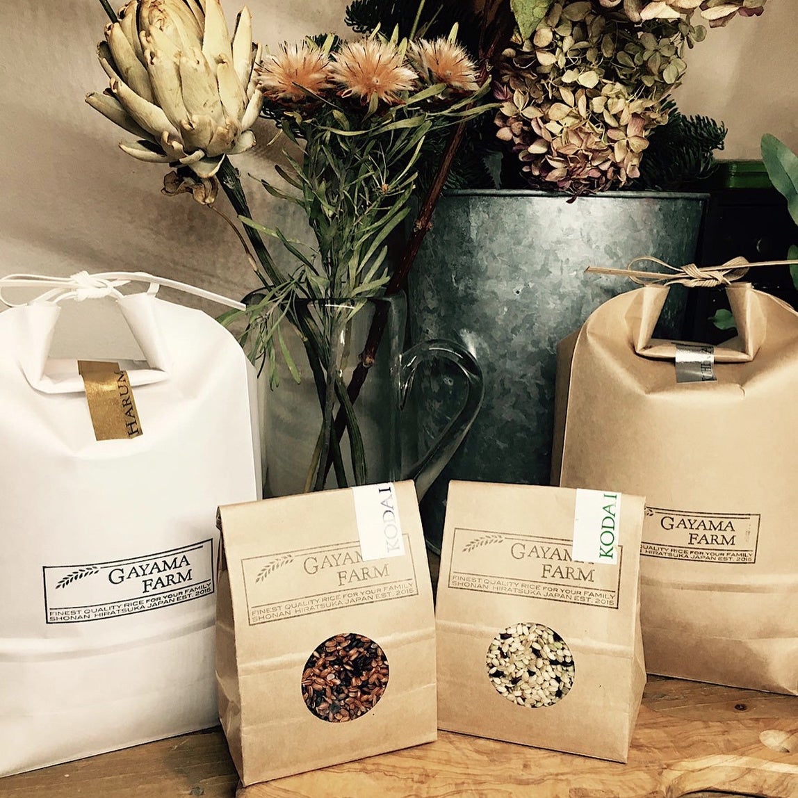 「おはなさけ」の美しいローズ・ピンクは天然由来。地元湘南の「ガヤマファーム」で育てられた、無農薬・無化学肥料の「古代米(紫黒苑)」によるものです。