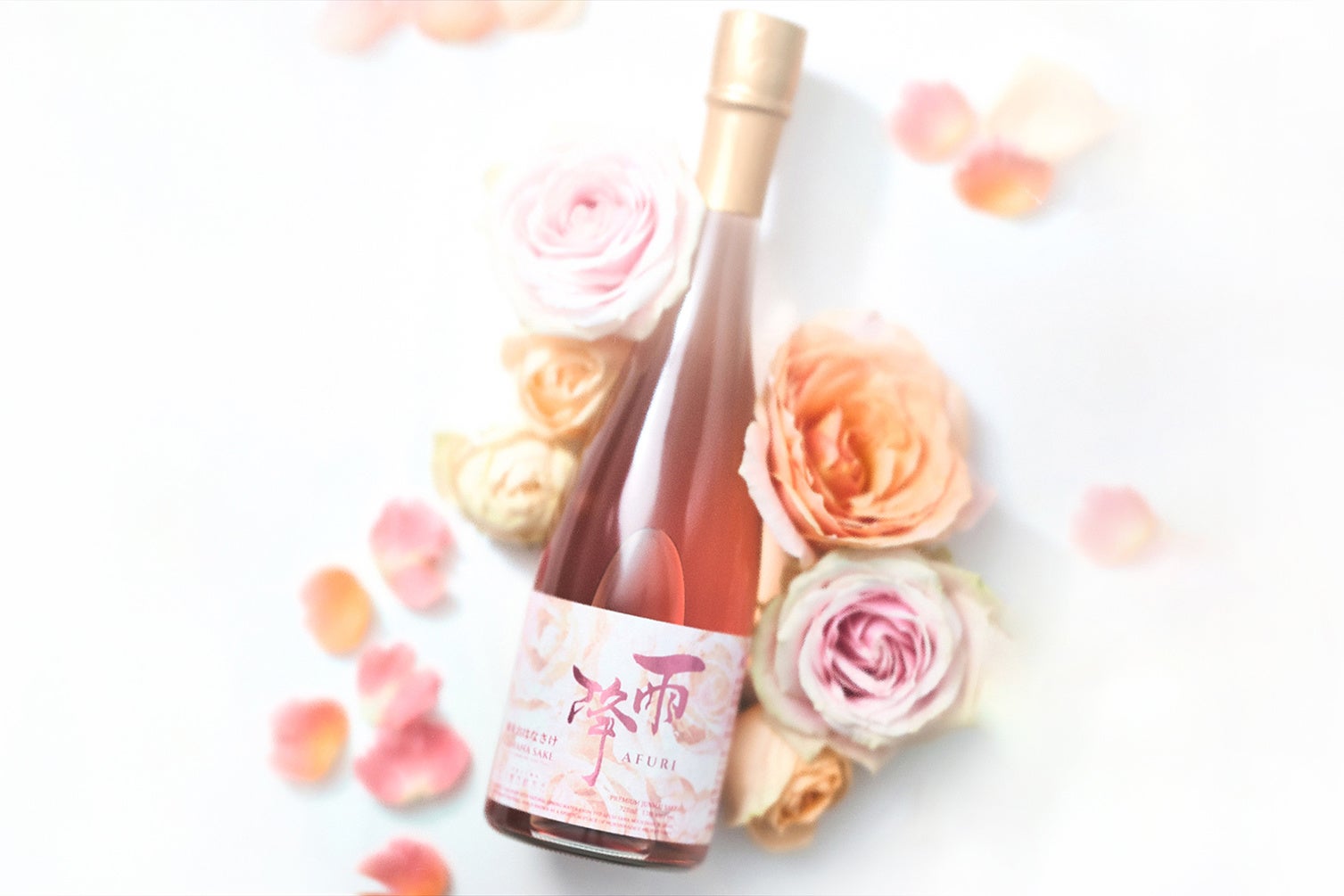 ①希少なツルバラの花酵母を使用した、清冽にして芳醇な香り。美しいローズ・ピンクの日本酒です。