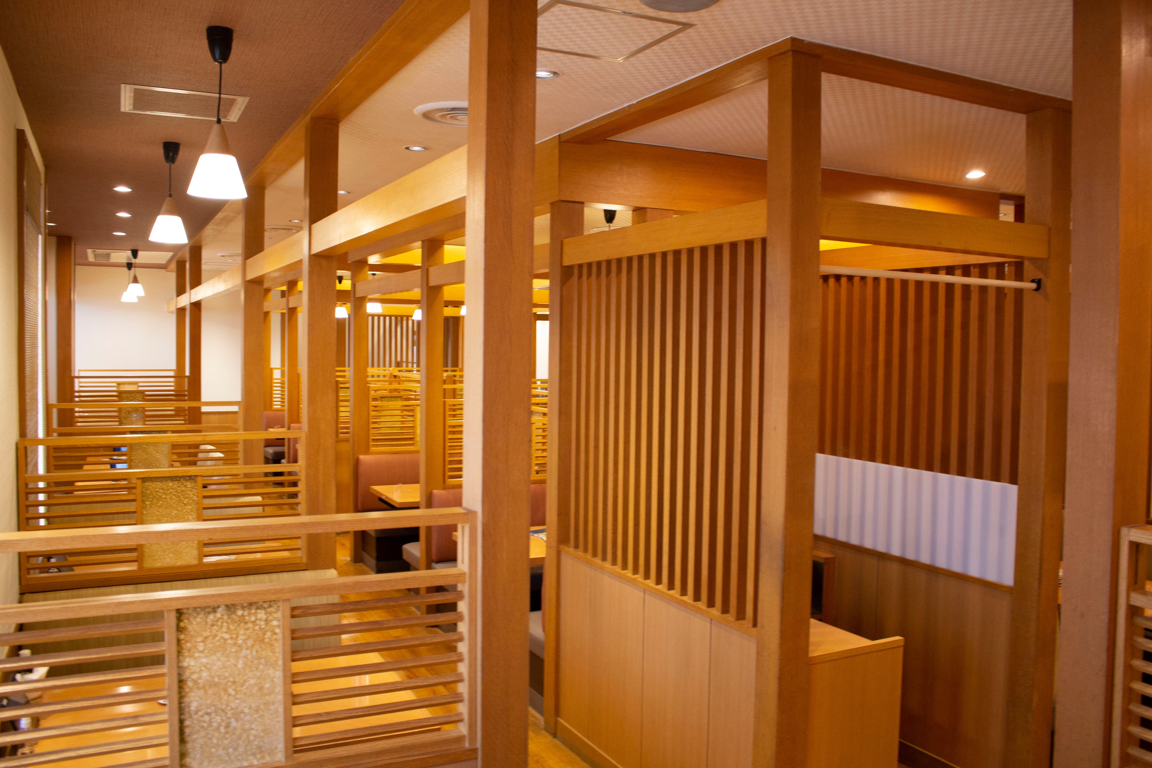 店内は、135席の広々としたクリーンな空間でゆっくりとくつろぎながらお食事ができます。また、従業員とお客様との接触機会を減らし、少しでもお客様の不安を払拭したいという想いから、配膳・運搬ロボット「Servi(サービィ)」を導入しております。単なる非接触型の配膳というだけでなく、“声を発するロボットが接客する”という新しい体験をお届けします。