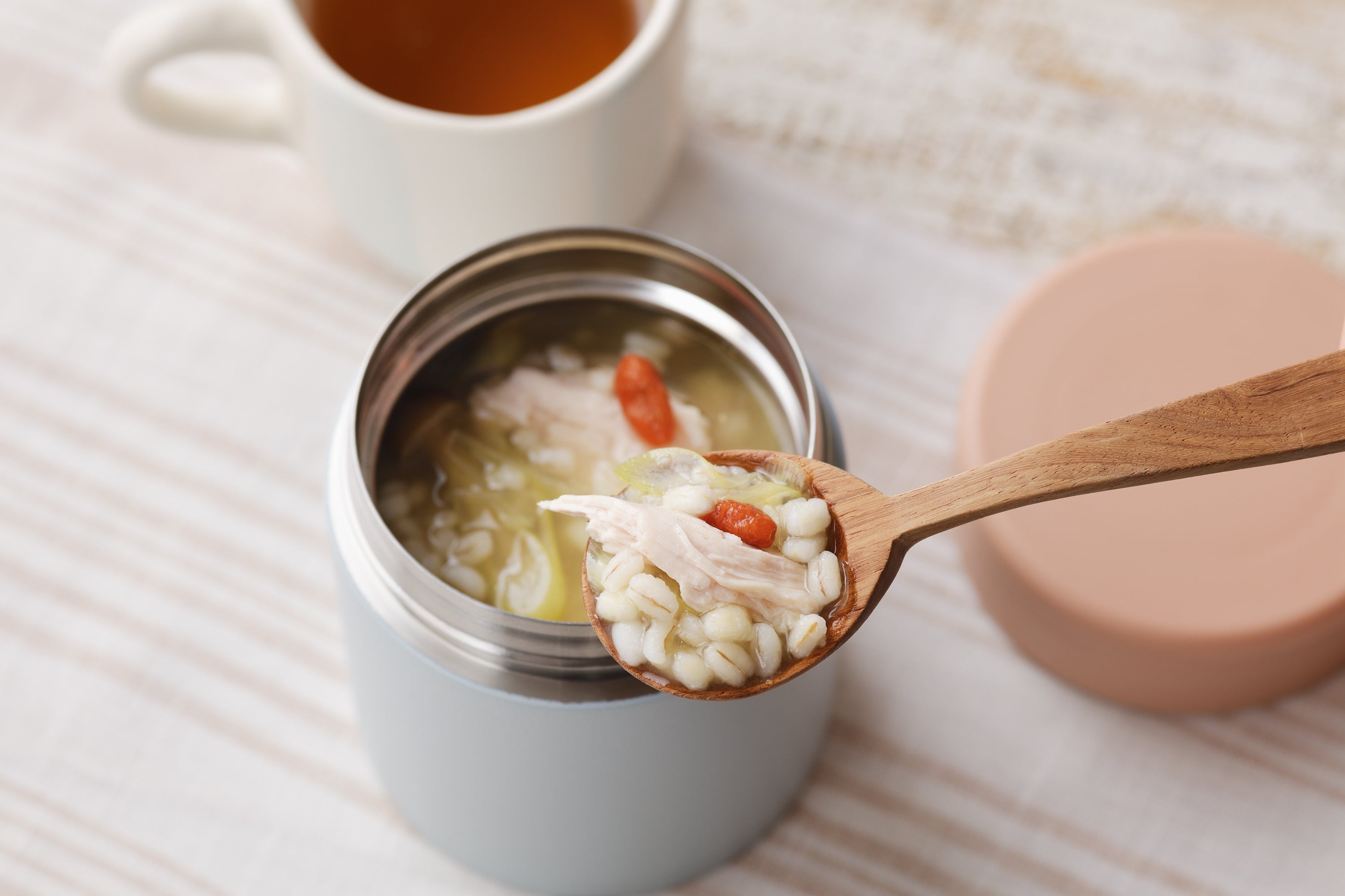 | 朝、具材と調味料、熱湯をスープジャーに入れるだけ! スープジャーだけで!かんたんもち麦参鶏湯 |