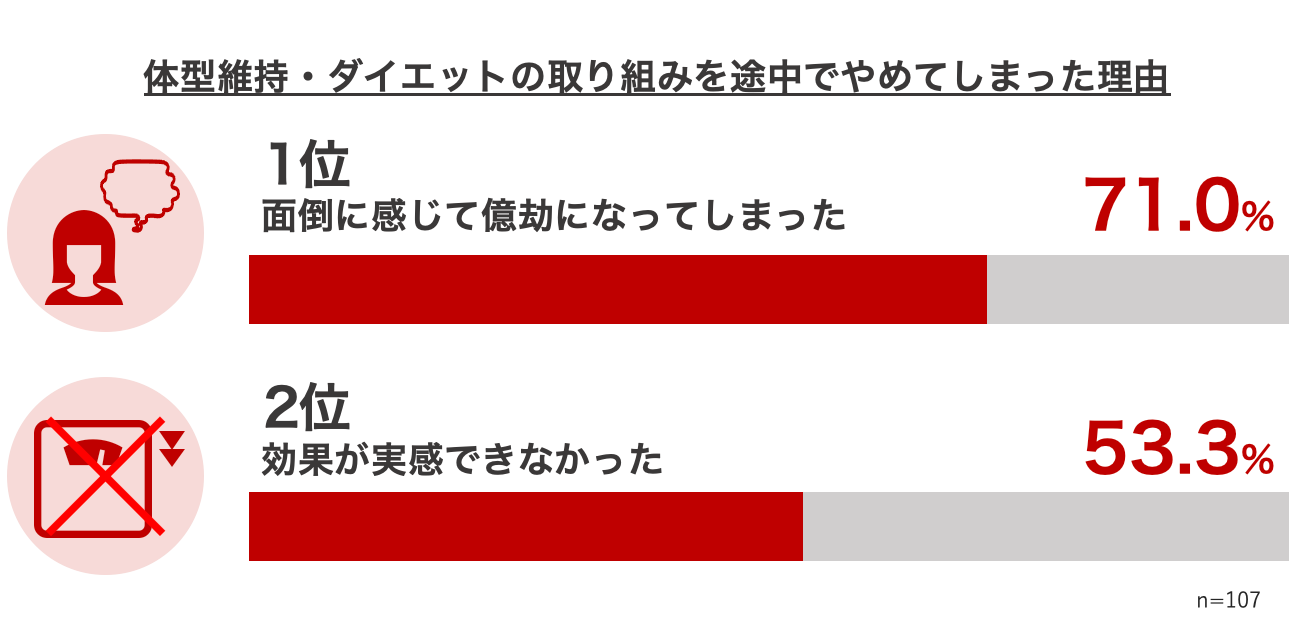 - 体型維持・ダイエットを挫折してしまう最大の原因は「面倒になって億劫になってしまった」