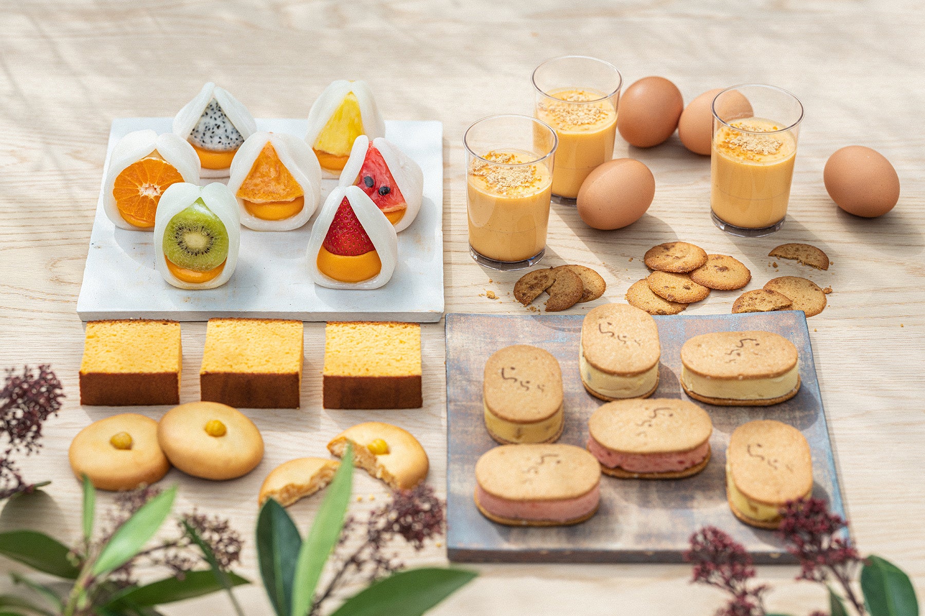 新鮮な磨宝卵ゴールドの卵黄を白餡に練り込んだ黄身餡と苺やみかん、キウイなど旬の美味しいを栃木を中心に全国からとりよせた果物を滑らかな餅で包みました。