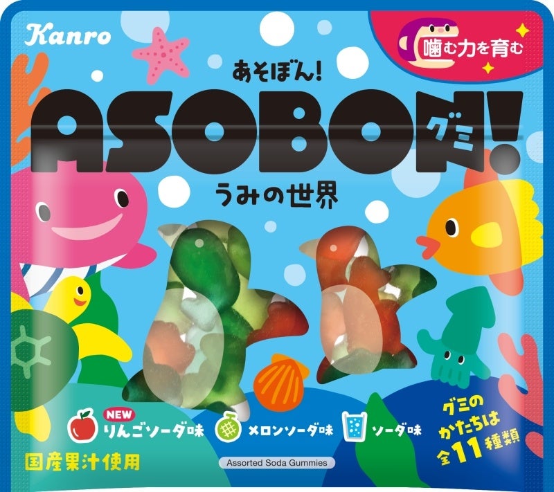 様々なグミのカタチで会話が生まれ、楽しく遊びながら食べることができる「あそぼん!」は、見て、触って、噛んで、おしゃべりしたくなる、お子様はもちろんパパ・ママにとっても嬉しいグミです。