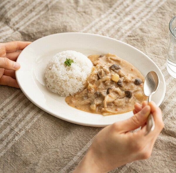Grinoオリジナルの商品はもちろん植物性100%レシピ+豆乳を使っているのでクリームシチューのように白いストロガノフに仕上がっています!「豆乳」「カシューナッツ」「オリジナル野菜ブイヨン」などでコクのある風味を実現しました。