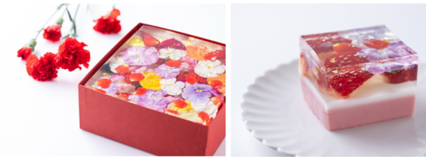 いちごと色とりどりの花々を敷きつめた、母の日限定の華やかなババロアです。さっぱりとしたレモンゼリーに、ほんのり甘酸っぱいいちごと濃厚なミルクのババロアを合わせました。食べられるお花「エディブルフラワー」を使用しているので、お花もご一緒にお召し上がりいただけます。美しさも美味しさも楽しめる、花束のように贈る母の日限定のいちごのスイーツギフトです。