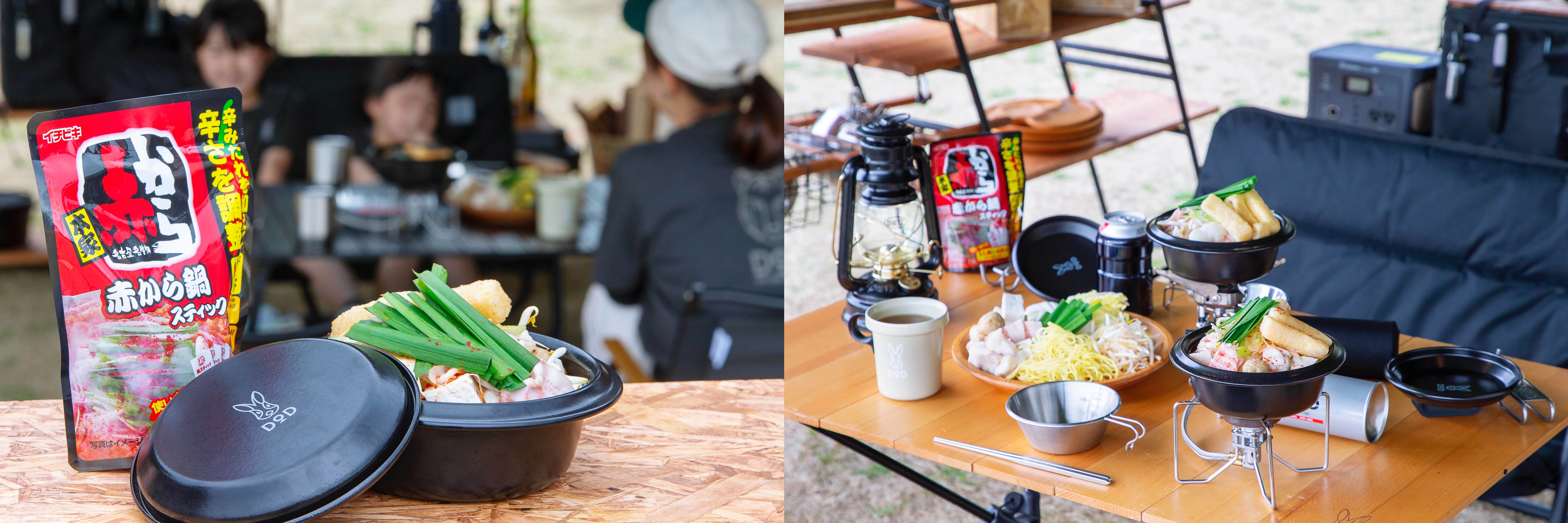 ▲B賞は「赤から」名物の赤から鍋のスープ1袋(スティックタイプ)と「DOD」の放浪ヒトリガマ2個。人気ブランド同士のコラボセット 10名様