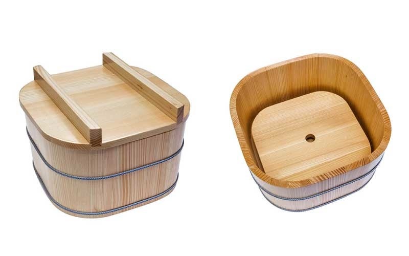 本品は、すし桶やおひつと違い「氷桶」としての用途で製造されているため防水性に優れています。また四角い形状のため、一般的な「丸型」の桶に比べ、製造に多くの手間と高い技術が求められます。そのため多くの数量をつくることが出来ません。今回も20個限りの販売となり、品切れとなった場合の増産は未定です。