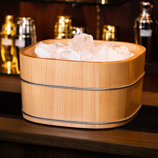 ※一切の妥協を排し製作したこの「角丸型氷桶」は、70年の歴史を持つ木曽桶の老舗メーカー 志水木材産業の匠による完全ハンドメイド品です。品切れとなった場合の増産は未定です。