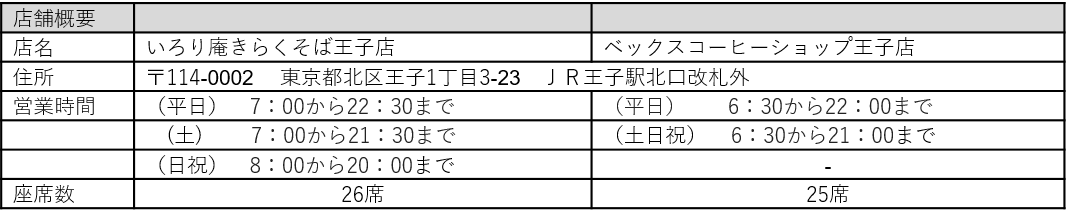 株式会社JR東日本クロスステーション フーズカンパニー(所在地:東京都台東区、カンパニー長:日野正夫)は、4月22日(金)に、主要ブランド「いろり庵きらくそば王子店」と「ベックスコーヒーショップ王子店」をJR王子駅北口改札外にオープンします。