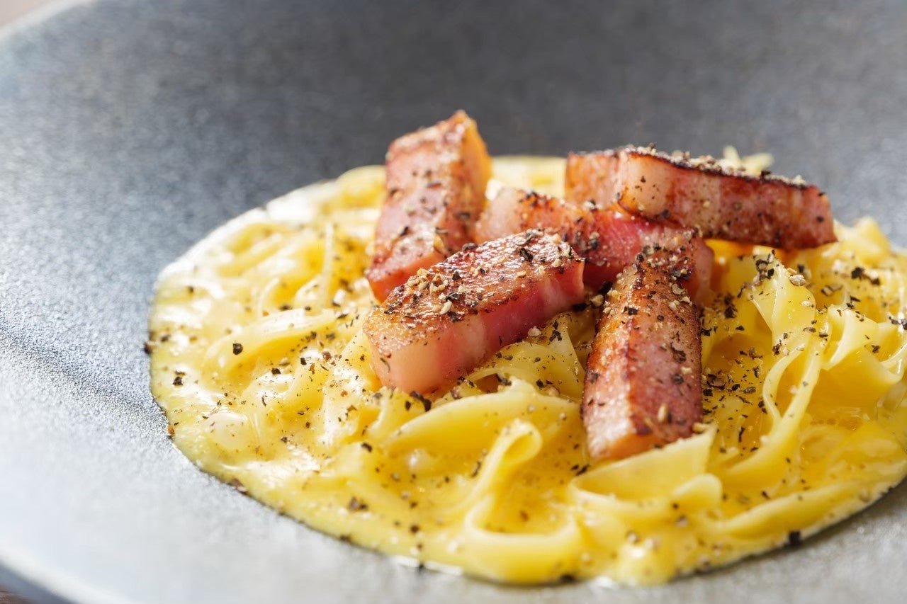 8年間の長きに渡り試行錯誤した結果、独自の粉の配合・真空製麺機使用によって、他店では味わえない、最高品質、唯一無二の弾力・コシのあるモチモチ食感と風味のパスタを作り出すことに成功しました。