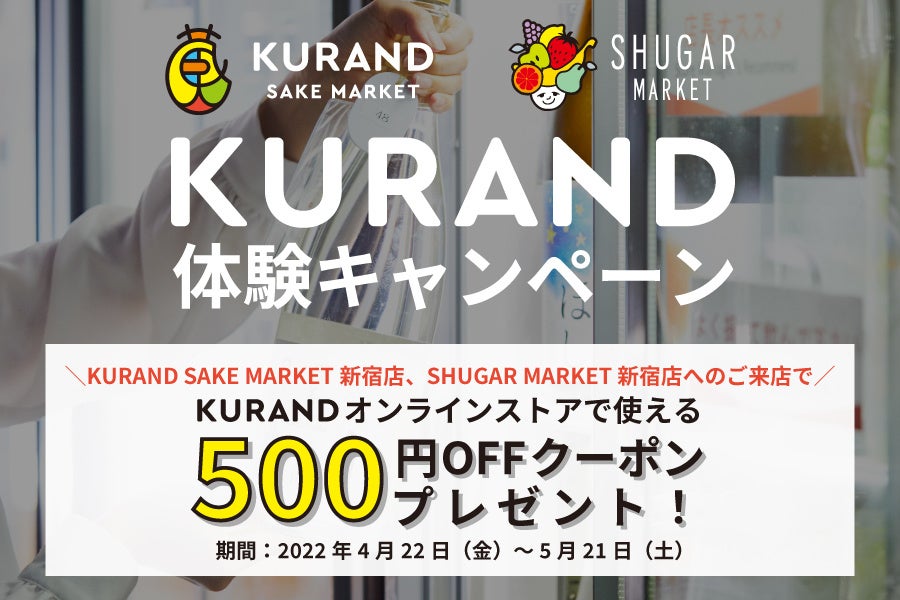 KURAND株式会社(本社:東京都足立区、代表取締役:荻原恭朗)は、弊社が運営するお酒のオンラインストア「KURAND(クランド)」のお酒が体験できる、飲み比べ専門店の「KURAND SAKE MARKET 新宿店」「SHUGAR MARKET 新宿店」の2店舗を、2022年4月22日(金)より1年3ヶ月ぶりに営業再開し、キャンペーンを実施します。