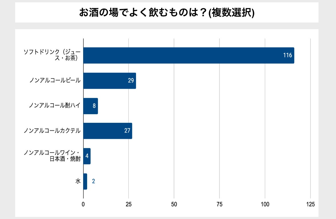 すると、「ソフトドリンク」が116票で圧倒的な1位となりました。ノンアルコールビールは29票、ノンアルコールカクテルが27票という結果に。
