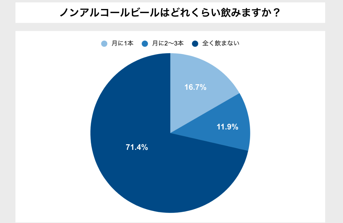 ノンアルコールビールを飲む頻度・量もアンケートを取ったところ71%の人が「全く飲まない」と回答しました。
