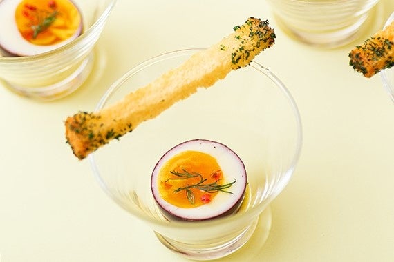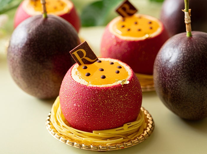 「あたびーファーム」のパッションフルーツとココナッツのムース。見た目もパッションフルーツのように仕上げています。