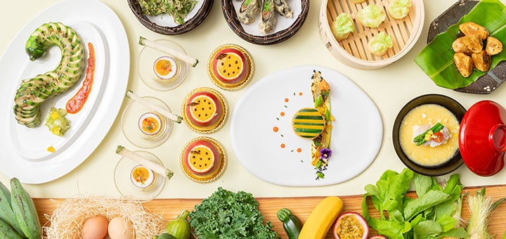 本企画は、持続可能な開発目標(SDGs)の達成に向けた取り組みの一環です。地産地消の食材を積極的に活用し、安全・安心な食材を調達、フードマイレージの削減を行っています。また地元の生産者と連携し、ここでしか食べることができないもの、「今」しか食することのできないものを調達し、よりおいしくいただけるようシェフが工夫を凝らしたスペシャルティ料理をご提供いたします。